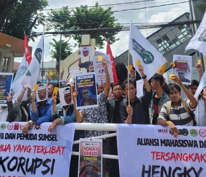 Palembang|KabarRI.com, – Ratusan Aktivis Antikorupsi bersama Mahasiswa dan Pemuda yang tergabung dalam Aliansi Mahasiswa Pemuda Sumatera Selatan melakukan aksi unjuk rasa di depan gedung Pengadilan Negeri Palembang. Mereka mendesak agar segera menetapkan Hengky Pribadi sebagai tersangka dalam kasus tindak pidana korupsi pengerjaan Retrofit Sistem Sootblowing pembangkit listrik tenaga UAP (PLTU) Bukit Asam (PTBA) PLN Unit Induk Pembangkitan Sumatera Bagian Selatan.