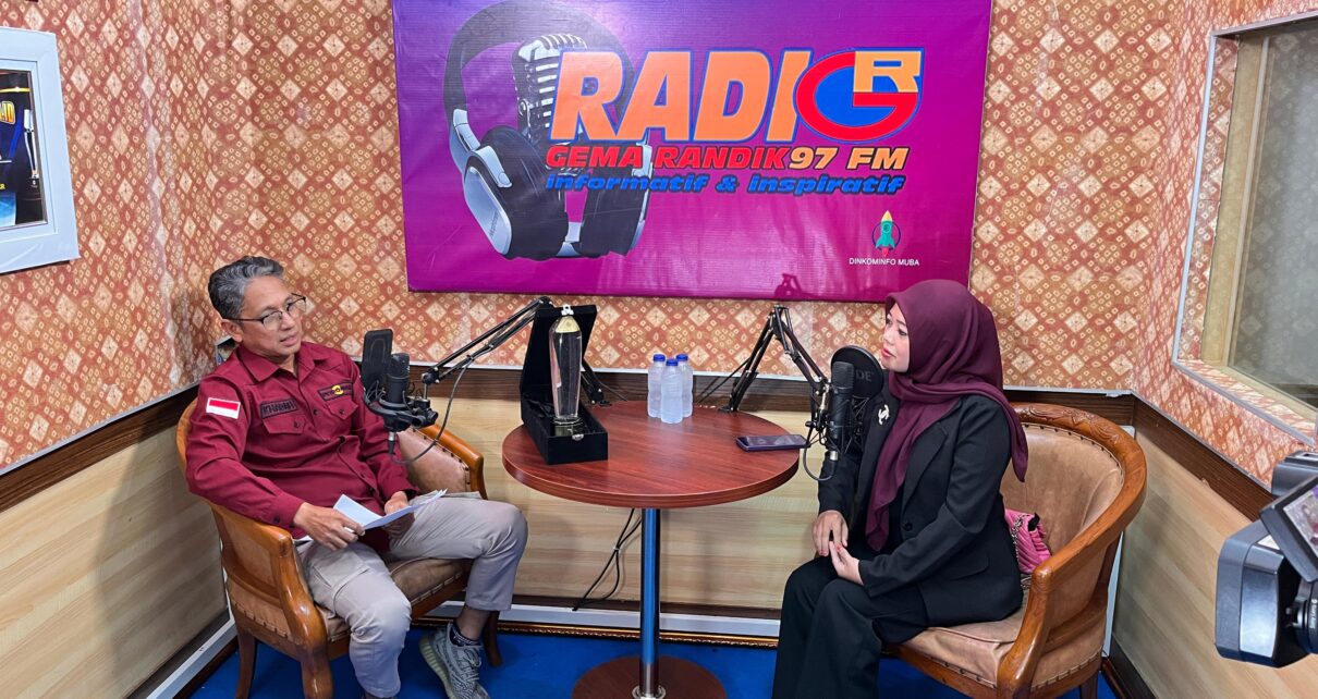 Direktur Utama PT Petro Muba, Khadafi, SE, menyampaikan kebanggaannya saat menjadi narasumber dalam program podcast Hallo Muba yang dipandu oleh Elisa Anwiana, (1/5/2025) di Dinas Kominfo Muba.