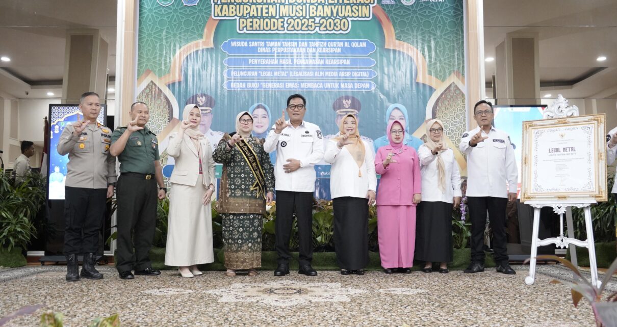 Tak hanya pengukuhan, acara ini juga dirangkai dengan Wisuda Santri Taman Tahfizh dan Tahsin Qur’an Al Qolam, binaan Dinas Perpustakaan dan Kearsipan Kabupaten Muba. Wajah para santri yang penuh semangat dan hafalan Qur’an yang mengalir lancar menjadi penanda bahwa literasi spiritual juga menjadi prioritas pembangunan sumber daya manusia di Muba.