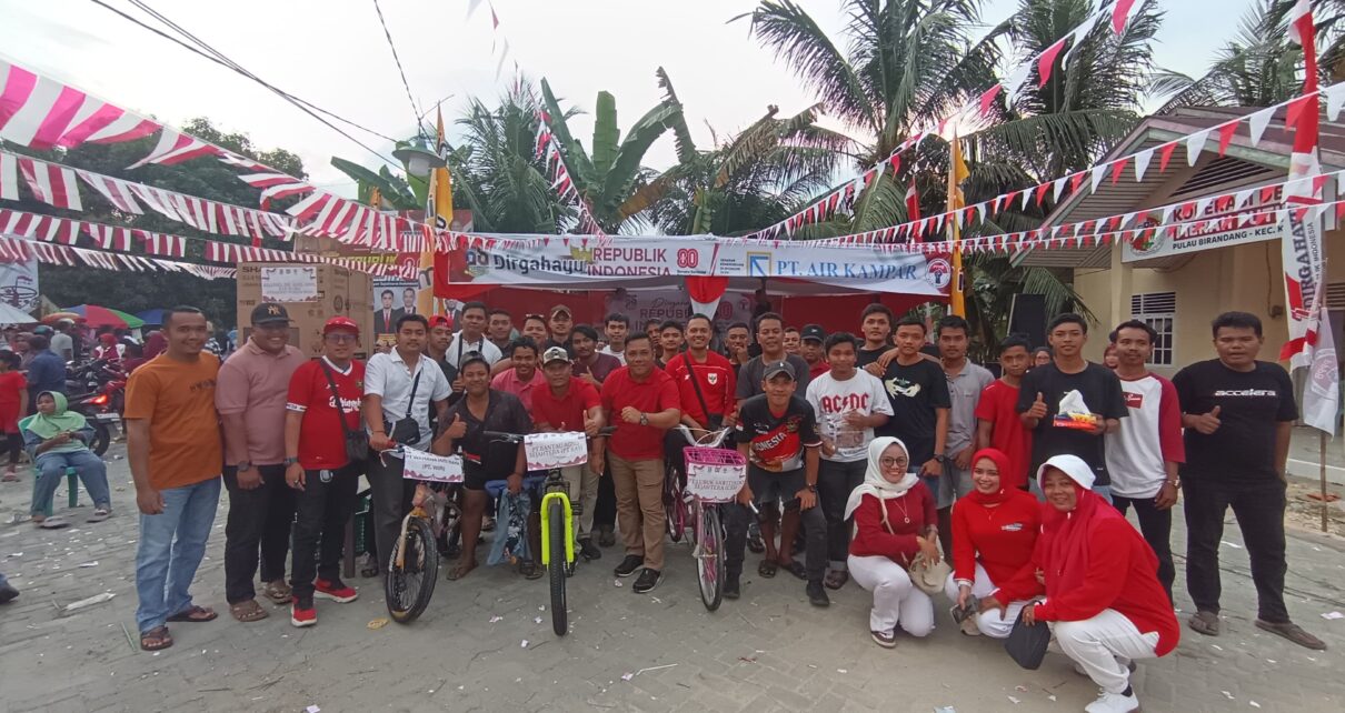 Riau|KabarRI.com, – Minggu (17/08/2025) Pemuda pemudi Desa Pulau Birandang Kabupaten Kampar provinsi Riau, sukses gelar Semarak Kemerdekaan HUT RI ke 80 di halaman Puskesmas Desa Pulau Birandang. Beragam rangkaian event dilaksanakan mulai dari Jalan Santai, Pesta Rakyat dan Panjat pinang. Ratusan warga terlihat bersemangat mengikuti setiap rangkaian acara yang diselenggarakan. Terutama ketika pembagian doorprize yang telah disiapkan panitia guna menghibur dan memberi manfaat kepada masyarakat.
