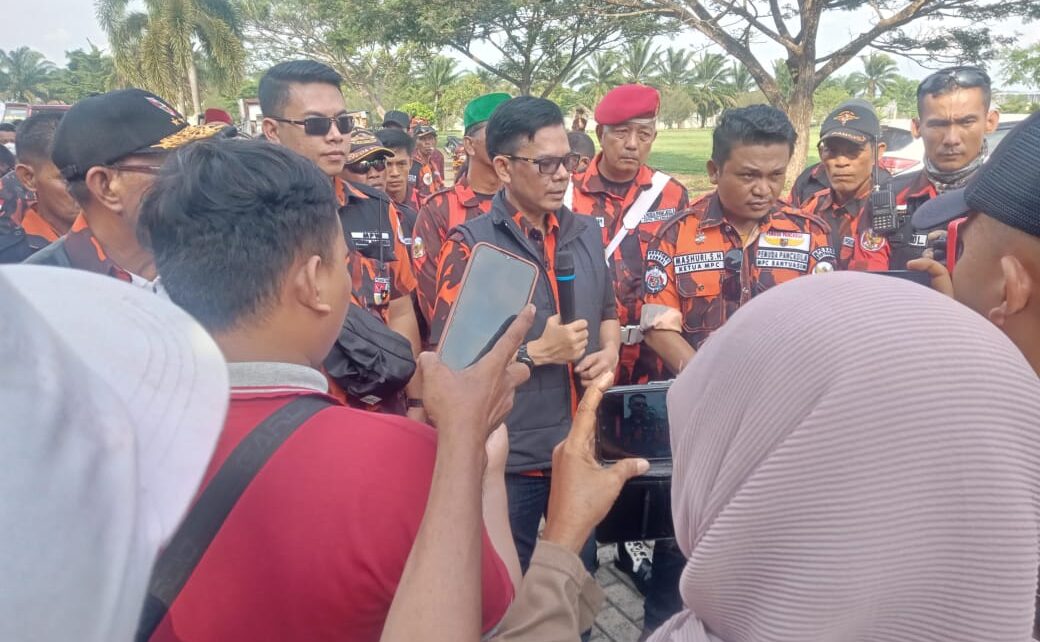 Ogan Ilir| KabarRI.com, -Aksi damai Ormas pemuda Pancasila (PP)di halaman kantor bupati Ogan Ilir Tanjung senai untuk mendesak kepada pemerintah daerah(Pemda) Ogan Ilir untuk tidak memberikan izin atas pembagunan kandang monyet yang ada di kelurahan payaraman kecamatan payaraman kabupaten Ogan Ilir, Rabu 27-12-2023