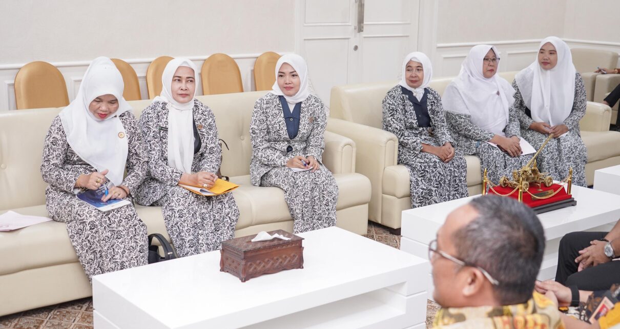 Senyum Ibu-ibu Pengajian Terima Bingkisan dari DWP Muba Jelang Lebaran